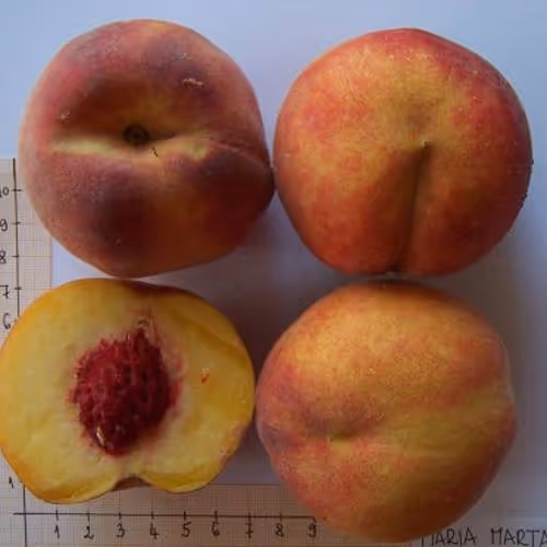 Rast je bujna in robustna. V rodnost preide hitro potem pa obilno in redno rodi.Plod je srednje debel, ploščat, manj dlakav in je rumene barve z rdečimi prižami . Meso je zelo čvrsto, belo in zelo sladkega okusa. Se dobro loči od koščice in je precej odporna na bolezni (tudi kodravost).