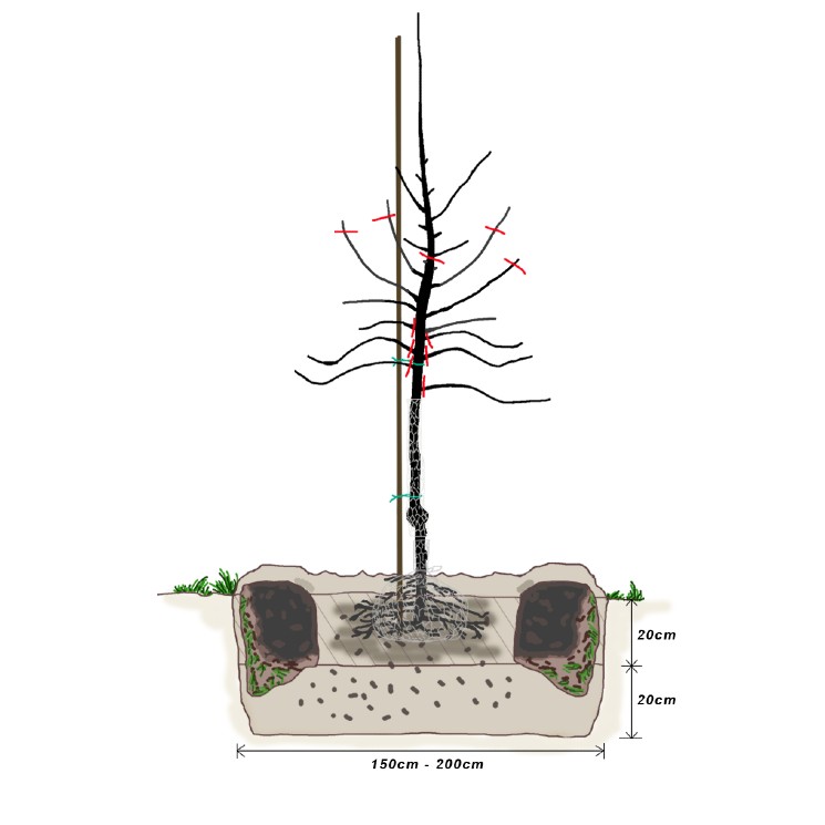 Slabše kot je mesto sajenja (zasenčeno, dalj časa mokro, zakisano ali pa je na istem mestu prej rastlo drugo drevo) bolj je važno narediti večji premer jame in v jamo dati dovolj organske mase (humus, preperel kompost, hlevski gnoj, peletiran hlevski gnoj...)
