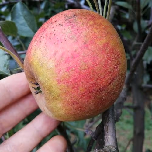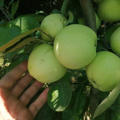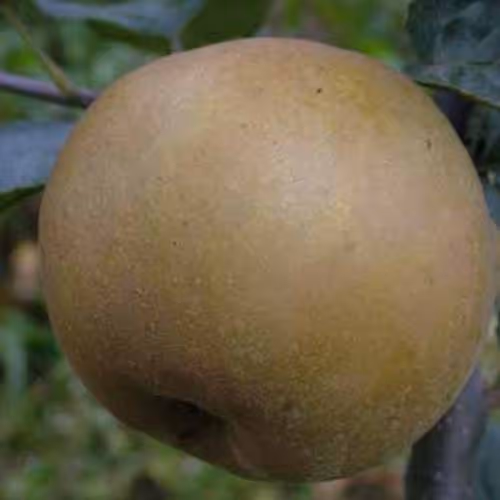 Rast je bujna.Plodovi so srednje debeli in nekoliko sploščeni. Kožica je zelena, ki sčasoma prehaja v rumenkasto, prekrita je s rjavkasto hrapavo prevleko. Meso je sočno z prijetnim sladkokislim okusom.