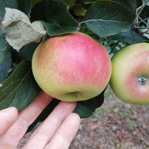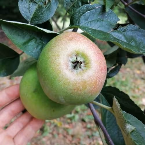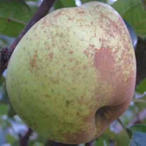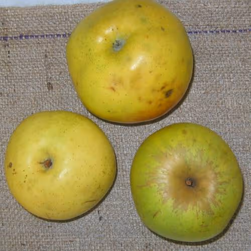 Rast je bujna.Plodovi so debeli, okroglasto ploščati. Kožica je zelenkasto rjavkasta, na sončni strani rdečkasta, hrapava. Meso je rumenkasto, čvrsto, prhko, sočno, osvežujoče kislega okusa z tipično aromo. Skladišči se približno 4 mesece.
